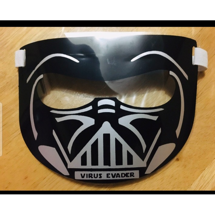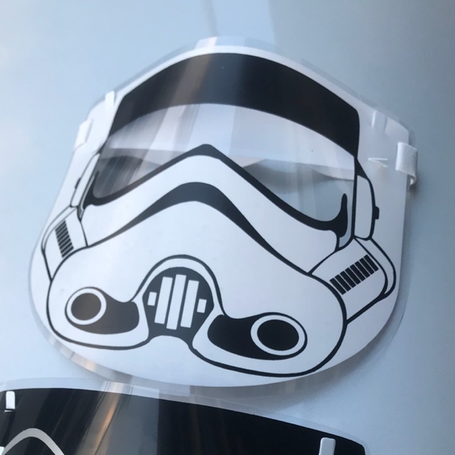 The series of face shields have the outline drawing of iconic characters' masks from the star wars universe, namely darth vader, the mandalorian, the scout trooper, and of course, the stormtrooper.